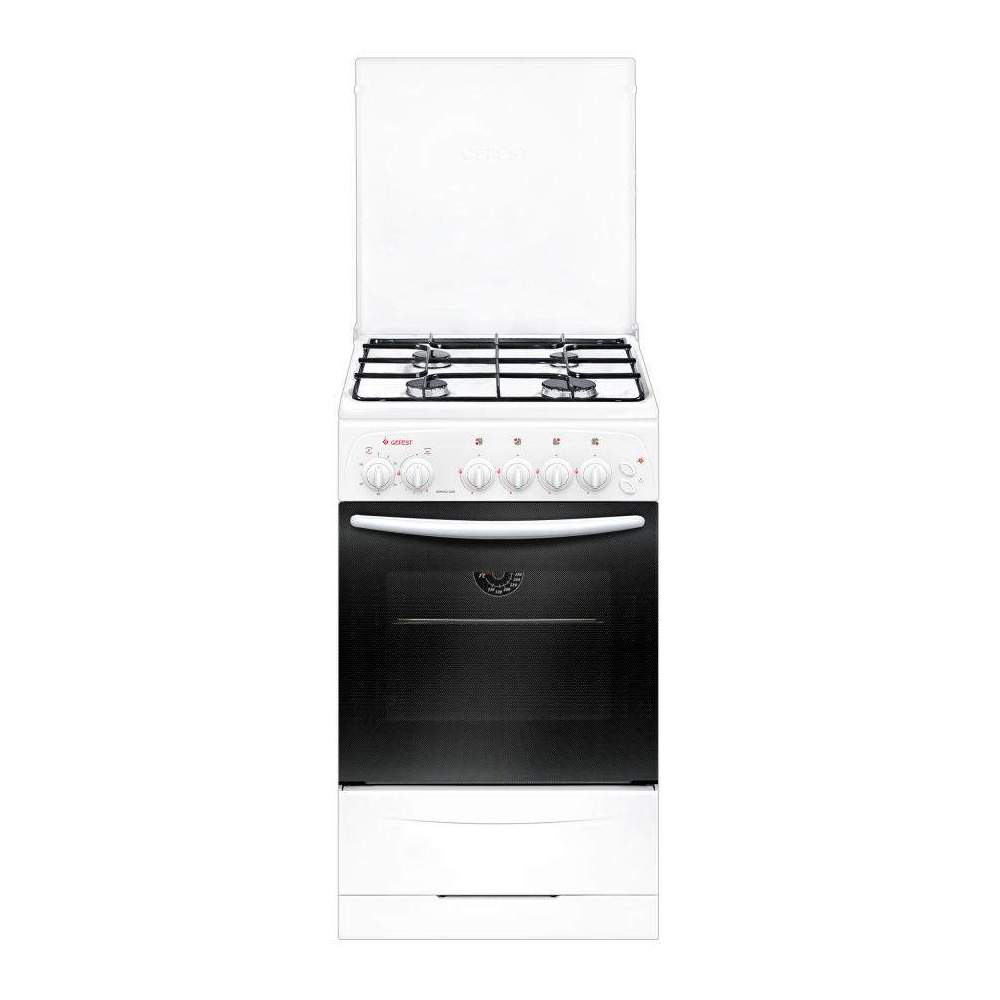 Духовой шкаф: Газовая духовка с полезным объемом около 42–44 литров. Оснащена системой газ-контроль для безопасности (автоматическое прекращение подачи газа при затухании пламени) и штампованными направляющими.