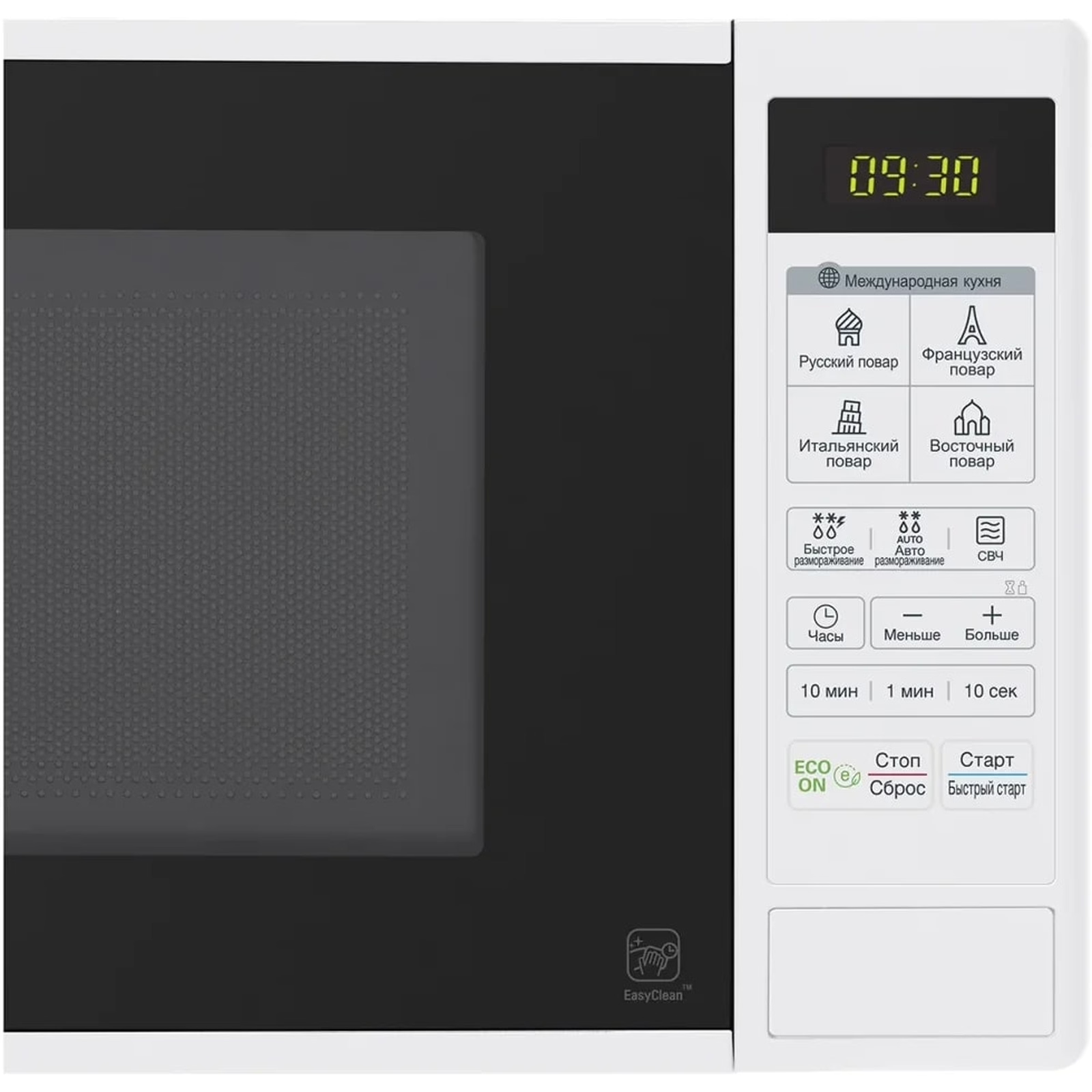 Микроволновая печь LG с внутренним покрытием EasyClean™ помогает избавиться от загрязнений проще и легче – оно устойчиво к механическим повреждениям и впитыванию жира, благодаря чему частички пищи не прилипают к стенкам печи и легко очищаются.