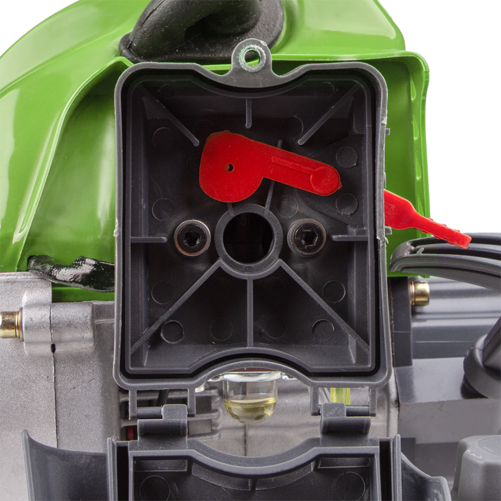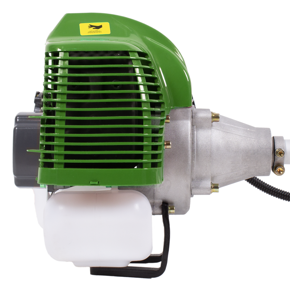 Особенности: 2-тактный двигатель воздушного охлаждения, улучшенный карбюратор, усиленный редуктор, головка полуавтомат Китай, ручка газа Китай, стандартное крепление рукоятки к штанге, ЛЕГКИЙ ПУСК 4 кулачка, насос-праймер подкачки топлива, металлическая защита бензобака, система виброгашения – 6 маслозаполненных, обрезиненных подшипников в штанге, упрощенная система крепления защитного кожуха к штанге (2 винта)