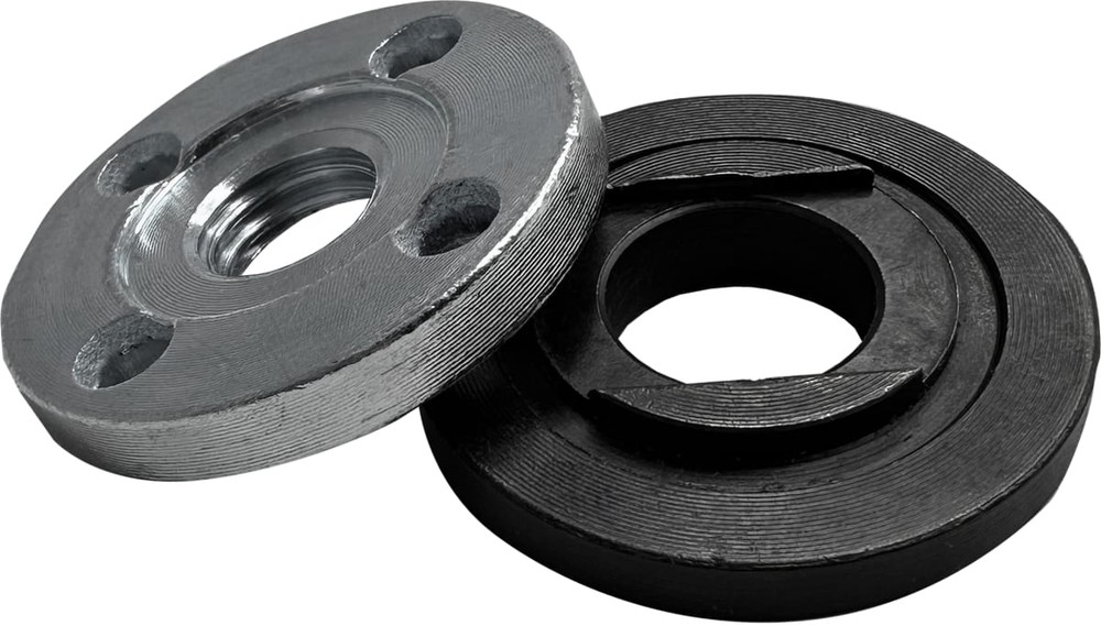 Комплект гайка М14 с опорным фланцем для УШМ vertextools 20-40-125 применяется для установки дисков с посадкой 22.2 мм. Подходит для УШМ 115-230 мм. Фиксация гайки производится при помощи ключа с расстоянием между отверстиями - 30 мм. Резьба гайки - М14.
