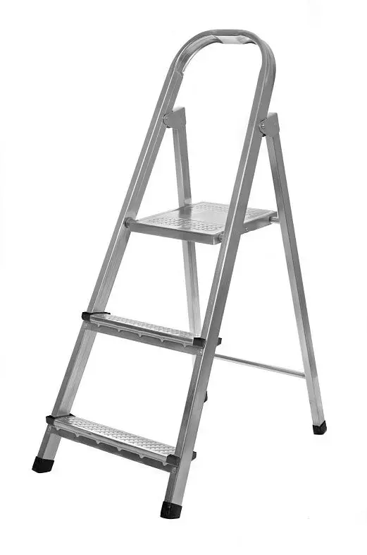 Стремянка легко транспортируется и хранится, а также быстро и просто устанавливается и снимается. Ножки-опоры снабжены противоскользящими пластиковыми заглушками, для предотвращения скольжения на поверхности.