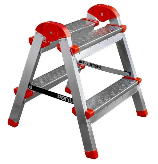Двусторонняя стальная лестница обладает продуманным и надежным дизайном, главным плюсом которого является внимательное отношение к безопасности пользователя. Рифленые ступени и пластиковые накладки в опорной части эффективно защищают от любых внезапных сдвигов или скольжения в процессе работы.