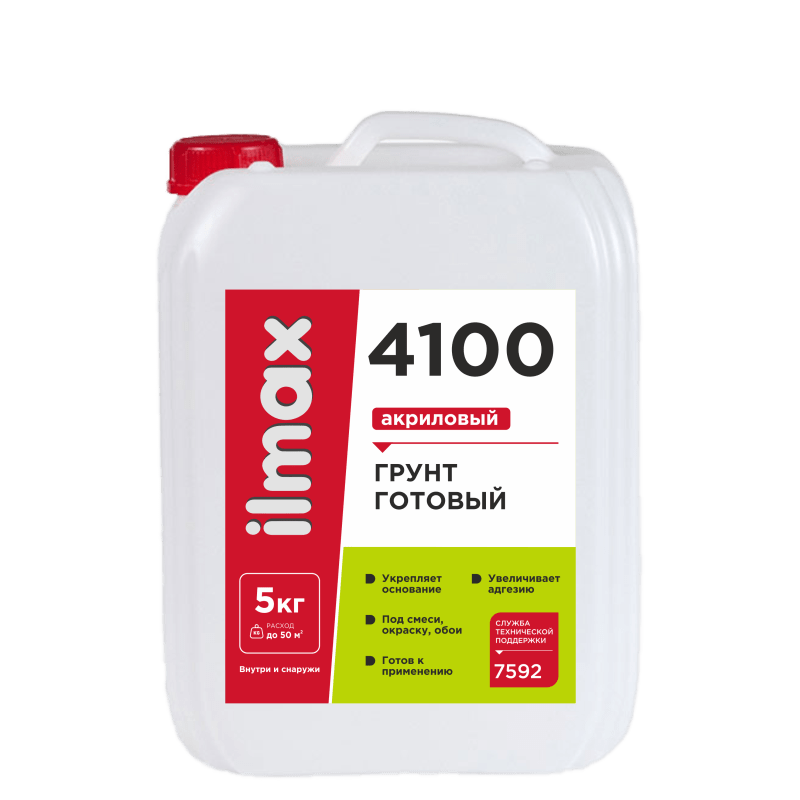 iilmax 4100 – готовый к применению грунт на основе дисперсии акрилового сополимера проникает в основание, обеспыливая и упрочняя его. После обработки поверхности грунтом снижается водопоглощение, тем самым предотвращается быстрое высыхание наносимых в дальнейшем материалов и обеспечивается их равномерный набор прочности. Обработка грунтом увеличивает адгезию между основанием и наносимыми материалами. После высыхания – прозрачный.