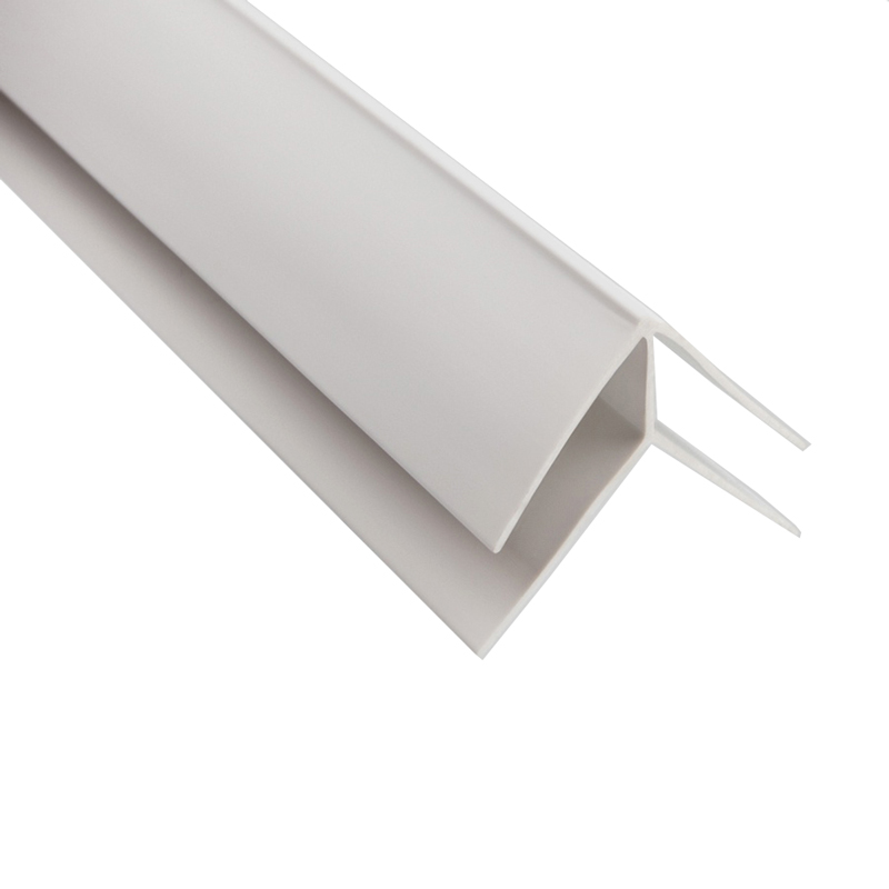 Наружный угол по форме напоминает ёлку, за что его нередко называют ёлочкой. Наружный угол это пара пазов, соединенных под углом 90 градусов, скрепляет материал на наружных углах стен и закрывает торцевые грани материала. Благодаря структуре профиль для стеновых панелей ПВХ ёлочка делает конструкцию прочной и устойчивой.