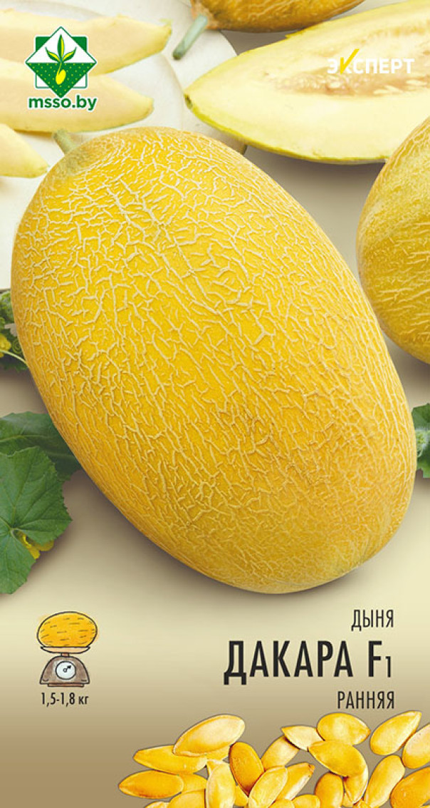 Ранний урожайный гибрид голландской селекции. Период от всходов до первого сбора 75-80 дней. Растение среднеплетистое. Плоды удлиненно-овальной формы, желто-оранжевые, покрыты равномерной сеткой, массой 1,5-1,8 кг. Мякоть кремовая, нежная, сочная, сладкая, восхитительного вкуса и аромата. Близок к эталону по раннеспелости, содержанию сахаров, товарности и лежкости. Рекомендуется выращивать через 25-30-дневную рассаду.