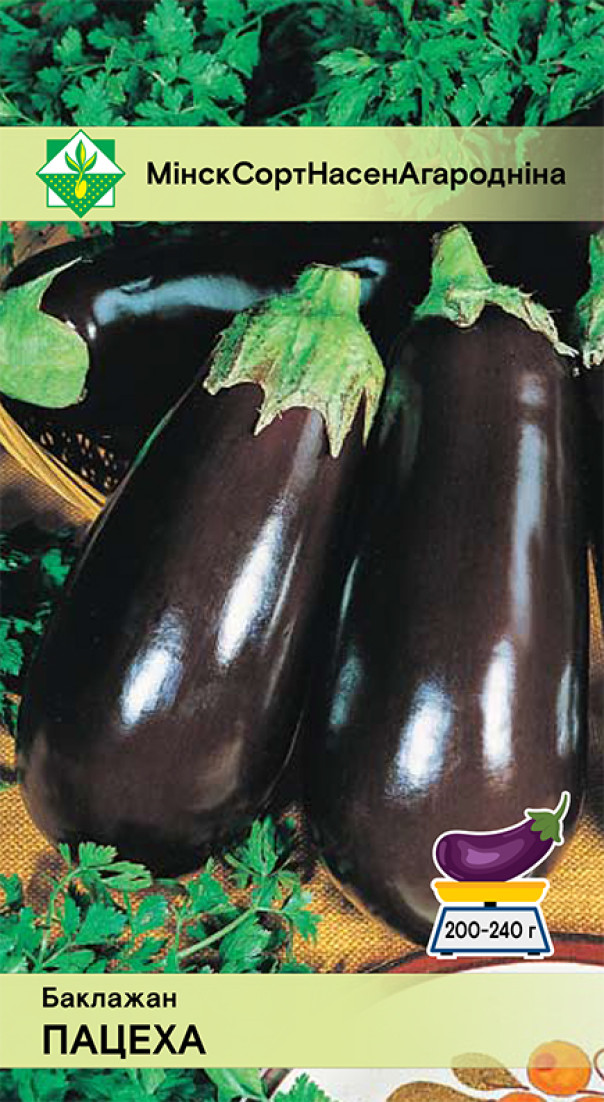 Среднеспелый сорт. Растение высотой 70-80 см. Плоды цилиндрической или удлиненно-грушевидной формы, с округлой верхушкой, гладкие, глянцевые, в технической спелости темно-фиолетовые, массой 200-240 граммов. Мякоть плотная, зеленовато-белая. Вкусовые и технологические качества отличные. Универсального назначения. Выращивают рассадным способом. Рассаду высаживают в теплицу или под пленочное укрытие в возрасте 60-70 дней.