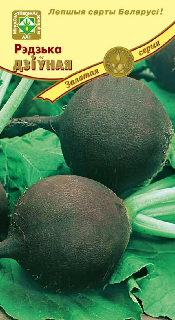 Среднеспелый сорт белорусской селекции. Корнеплоды округлой формы, черного цвета. Мякоть белая, плотная. Дегустационная оценка 4-5 баллов. Лежкость хорошая. Оптимальный срок сева для зимнего потребления 15-20 июня.