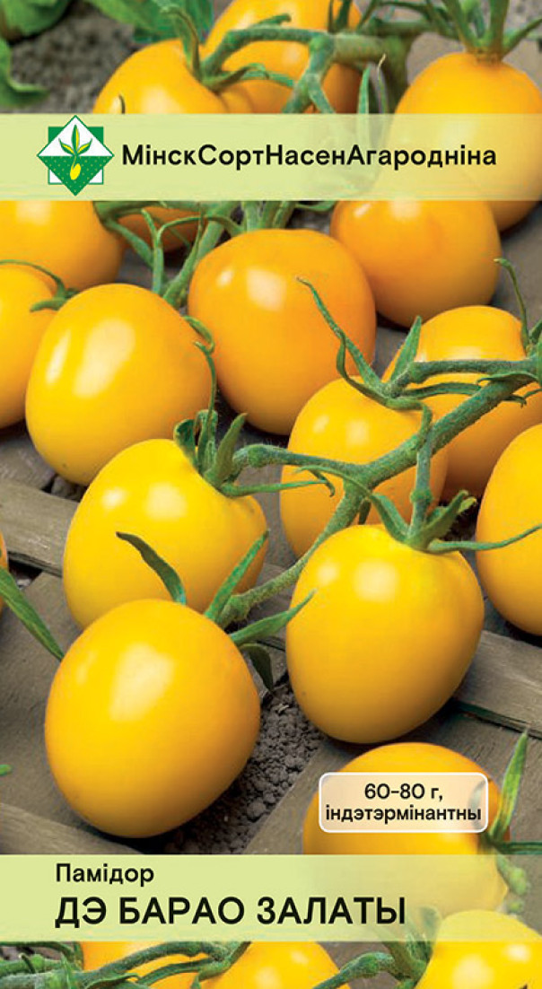 Среднепоздний сорт с обильным и продолжительным плодоношением для теплиц. Растение индетерминантное, высотой более 2 м. Плоды сливовидной формы, золотисто-желтые, гладкие, плотные, долго хранятся без потери товарных и вкусовых качеств, массой 60-80 г. Универсального назначения. Прекрасно подходит для цельноплодного консервирования. Требует регулярного пасынкования. Устойчив к фитофторе и пониженной освещенности.