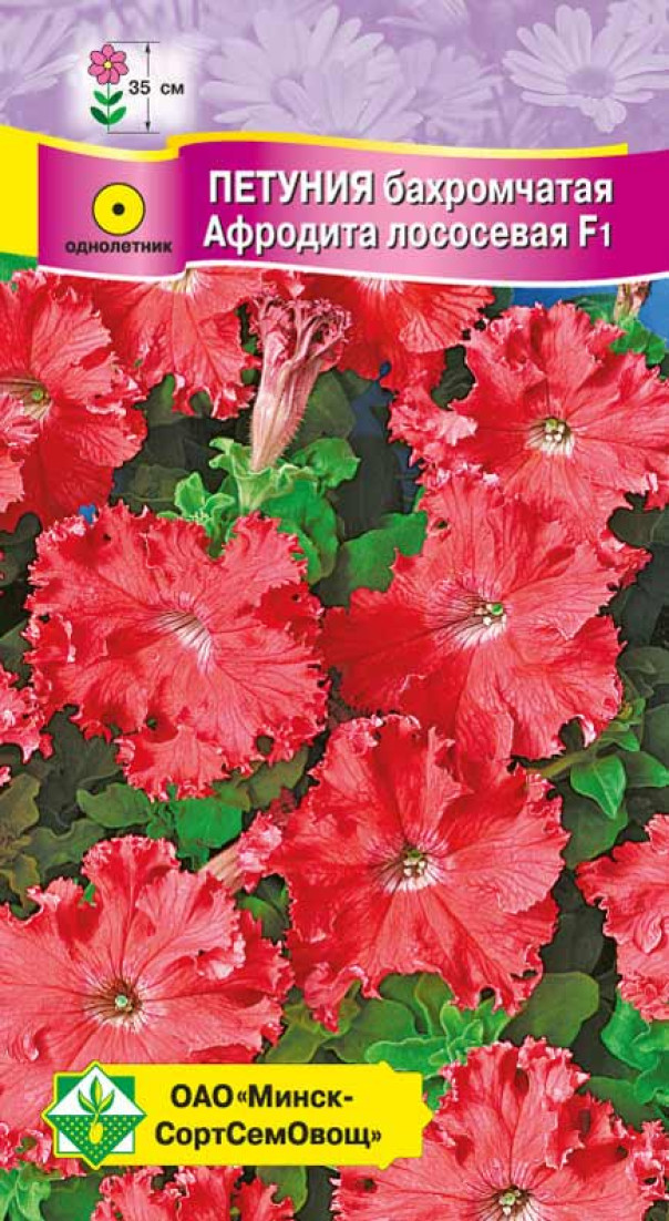 Продолжительно и обильно цветущее однолетнее растение высотой около 35 см. Цветки лососевой окраски, в диаметре 8-9 см, с волнистыми бахромчатыми краями, будто взволновалось море, из которого вышла богиня. Великолепна для цветников, украшения балконов и окон. При посадке в цветочные ящики образует небольшой каскад. Посев на рассаду производят в конце марта - начале апреля. Семена не присыпают, а слегка вдавливают в рыхлую влажную почву, посадочную ёмкость накрывают стеклом или пленкой.