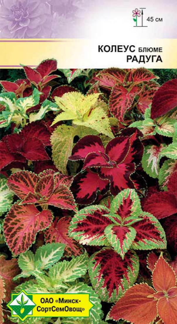 Прекрасное декоративное растение высотой около 45 см. Пестроокрашенные, бархатистые листья привлекают неповторимыми узорами и формами. Рекомендуется для групповых посадок, бордюров, клумб, используется как горшочная культура. Семена на рассаду высевают с конца марта, не присыпая, а слегка вдавливая их в почву. В открытый грунт рассаду высаживают, когда минует угроза заморозков, на солнечное место. Для улучшения декоративности нужна многократная прищипка, еженедельная подкормка и обильный полив.