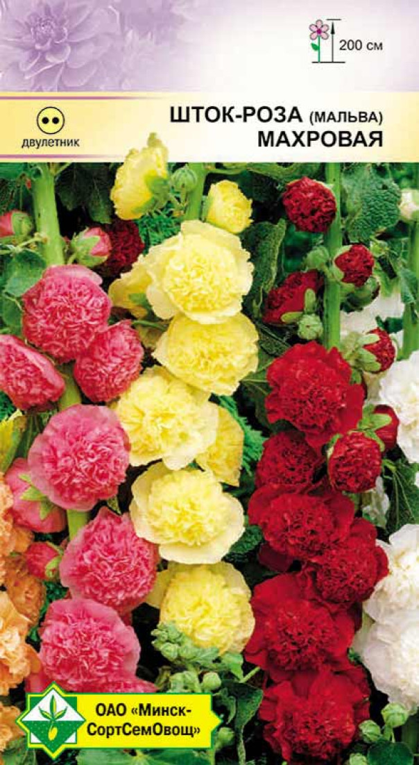 Двулетнее растение высотой до 2 м. Цветки разнообразной окраски, махровые, в диаметре 10-12 см, собраны в изящные колосовидные соцветия. Для декорирования оград и зданий, прекрасно смотрится на заднем плане цветника. В букете сохраняется до 10 дней. Семена высевают в конце мая - начале июня. На постоянное место пересаживают с комом земли в конце августа. Хорошо зимует при легком укрытии.
