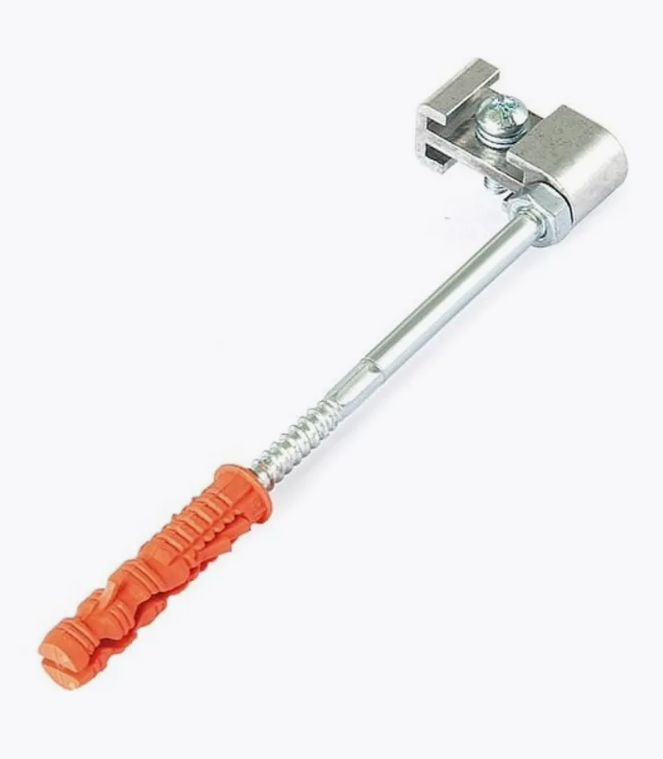Крюк хомута изготовлен из высокоуглеродистой оцинкованной стали, необходим для соединения хомутов с фасадом здания. Имеет соединительную часть особой конструкции для потайного соединения с хомутом, с одной стороны, и дюбель резьбовое соединение, с другой стороны.