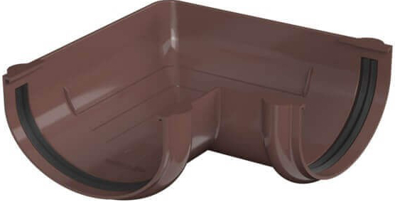 Все элементы водосточной системы, в том числе и угла желоба, изготовлены из ПВХ и отличаются: