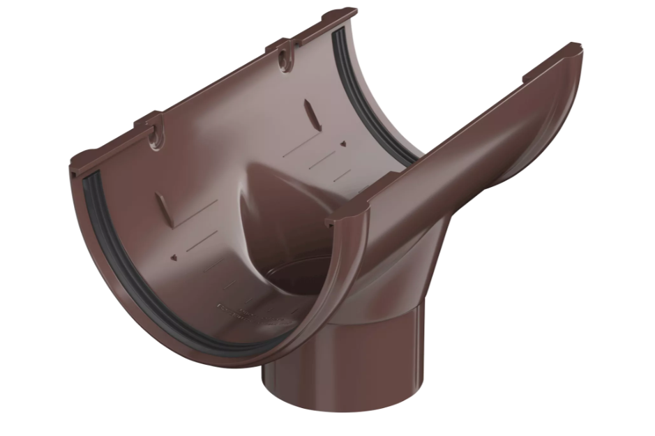 Элемент отводит собранную с кровли воду из желоба в стояк водосточной трубы. Двойное крепление воронки к лобовой доске дает конструкции дополнительную жесткость, монтаж элемента не требует дополнительных кронштейнов желоба.