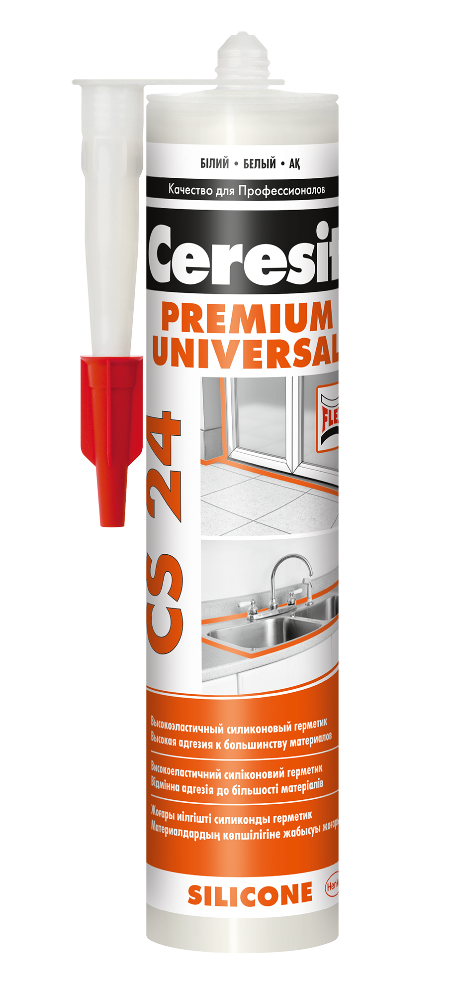 Универсальный силиконовый герметик CS 24 кислотного отверждения. Предназначен для использования без предварительной грунтовки внутри и снаружи зданий: для герметизации оконных и дверных блоков, стеклопакетов, швов стенных панелей и сборных ограждающих конструкций из бетона, металла и стекла, швов и примыканий в облицовочных покрытиях в ванных комнатах, душевых; выполнения деформационных швов в бассейна, резервуарах, системах теплоизоляции фасадов, в т.ч. в соединениях с относительно высокой подвижностью; в санитарных и других конструкциях, где требуется стойкость к плесени.