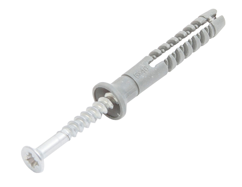 —Дюбель быстрого монтажа с гвоздевым шурупом, потай 6х40, п/п, в пласт. конт (50шт) В009139