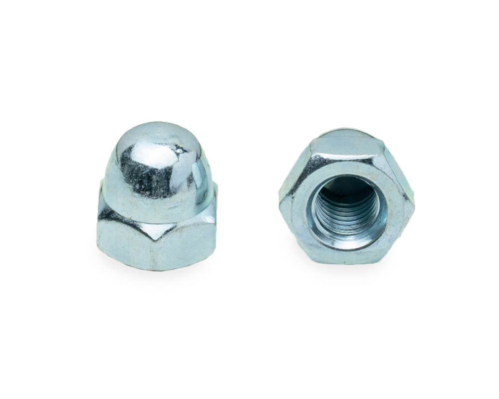 Гайка шестигранная с колпачком DIN1587, изготовленная из конструкционной оцинкованной стали.