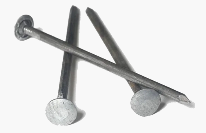 Шиферный гвоздь представляет из себя традиционный строительный гвоздь, дополнительно укомплектованный широкой оцинкованной шляпкой-колпачком, который обжимается вокруг головки гвоздя. Данная конструкция позволяет не деформировать лист шифера при его креплении, а широкая оцинкованная шляпка обеспечивает непопадание влаги внутрь конструкции.