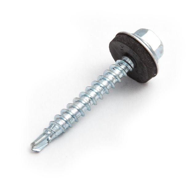 Саморез кровельный цинк шайба с прокладкой PT3 представляет собой саморез с шестигранной головкой и частой резьбой с уже надетой металлической шайбой с резиновой прокладкой. Используется для крепления металлочерепицы или другого похожего листового материала к металлической обрешетке. Сверло на конце позволяет засверливаться в металл до 6 мм без предварительного сверления. Изготовлен из стали и оцинкован.