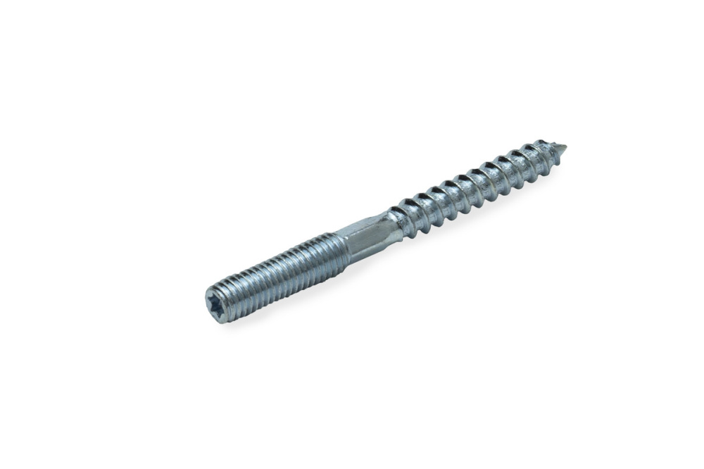 • Крепежный элемент имеет шуруп с одной стороны и шпильку с метрической резьбой с другой, разделенные шестигранной поверхностью (за исключением размеров 8х60 и 10х60).