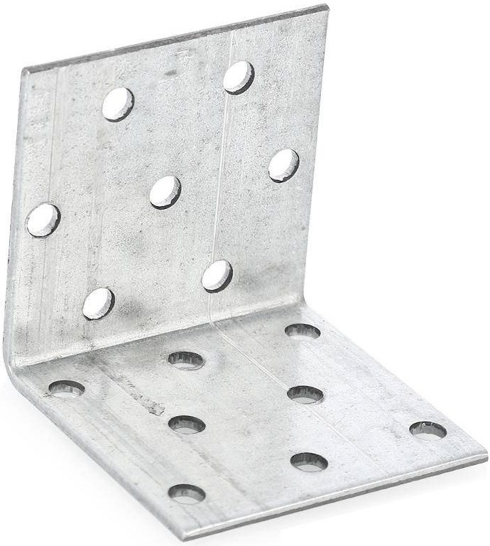 Уголок крепежный равносторонний KUR белый цинк STARFIX представляет собой металлическую пластину, согнутую под углом 90 градусов, со сторонами одинаковой длины. Получил универсальное применение, когда элементы конструкции необходимо скрепить под углом 90 градусов. Широко используется при соединении перекрытий, стоек и других деталей из древесины и древесно-стружечных плит. Изготовлен из стали и оцинкован. Крепление осуществляется гвоздями или шурупами. На один монтажный узел конструкции используется два крепежных элемента. Диаметр отверстий 5 мм.