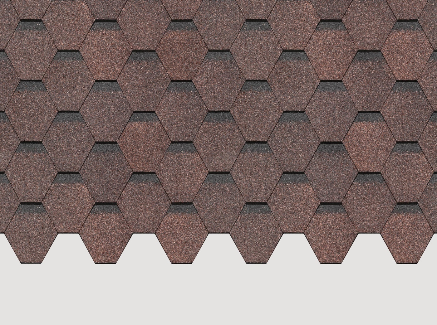 Кровля из черепицы в виде сот коричневого цвета с легким блеском и переливами создает покрытие с идеальным рисунком. Четкие линии, продиктованные самой природой, идеально впишутся в образ современного дома. Великолепные технические характеристики позволят использовать покрытие в первоначальном виде долгие годы.