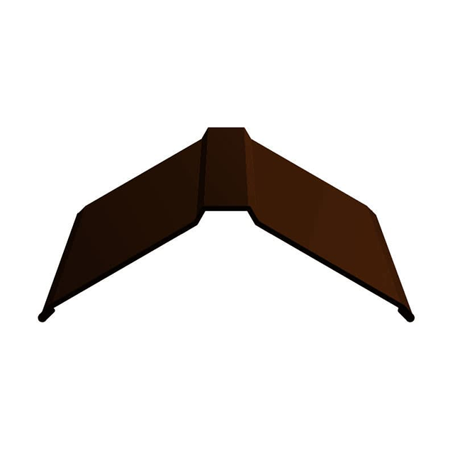 Отделочный элемент кровли. Помогает красиво оформить ребро пересечения двух скатов в верхней точке; оберегает стыки скатов от попадания влаги, ветра и других негативных влияний погоды. Изготавливается из оцинкованной стали с защитно-декоративным полимерным покрытием цвета по каталогу RAL. Края завальцованы.