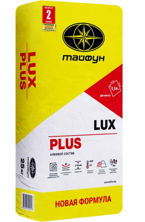 Клеевой состав Люкс Плюс – это цементный клей с увеличенной адгезией, для облицовки оснований плиткой различного размера, мозаикой, натуральным и искусственным камнем. Отлично ведет себя при эксплуатации в условиях повышенной влажности или при постоянном контакте с водой. Используется для наружных и внутренних работ. Подходит для полов с подогревом, облицовки печей и каминов. Отличается увеличенной адгезией, повышенной фиксацией и отсутствием сползания, которые позволяют производить приклеивание плитки «сверху вниз». Оптимальный подбор консистенции и толщины слоя исключают сползание клея, что позволяет начинать работу от верхней части стены и избегать приклеивания отрезанных плиток в хорошо просматриваемых местах.