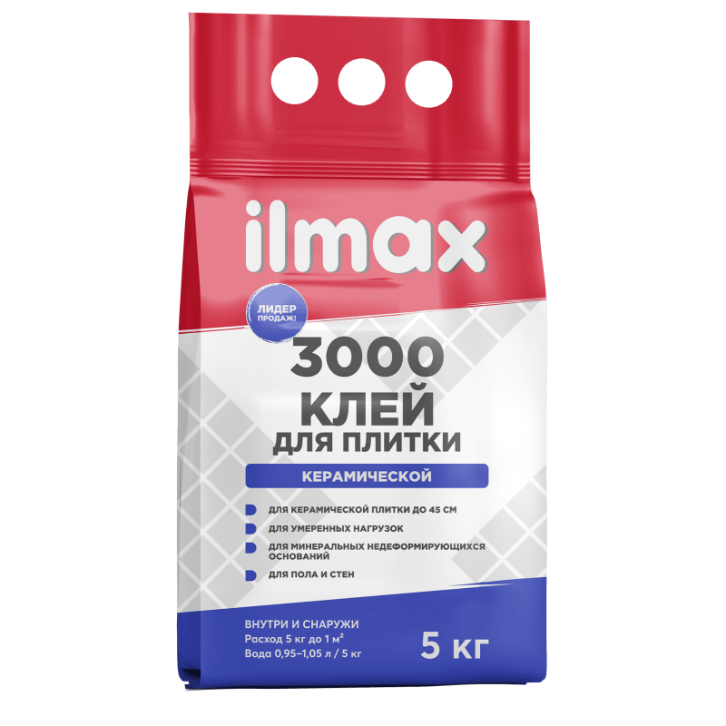 ilmax 3000 предназначен для приклеивания облицовочных материалов: цементной, бетонной, керамической плитки (сторона до 45 см) и мозаики.