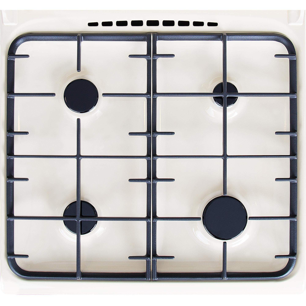 Варочная поверхность: Эмалированная сталь с 4 газовыми конфорками разной мощности. Оснащена электророзжигом, встроенным в ручки управления.