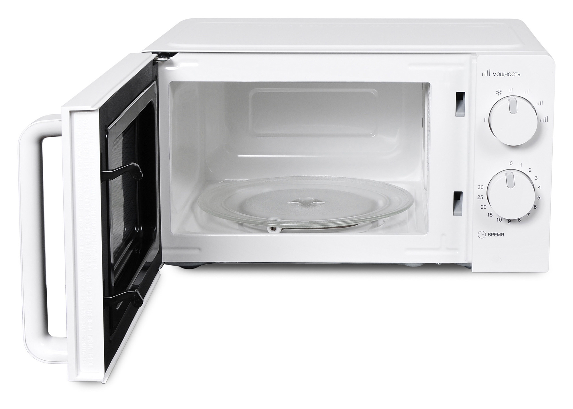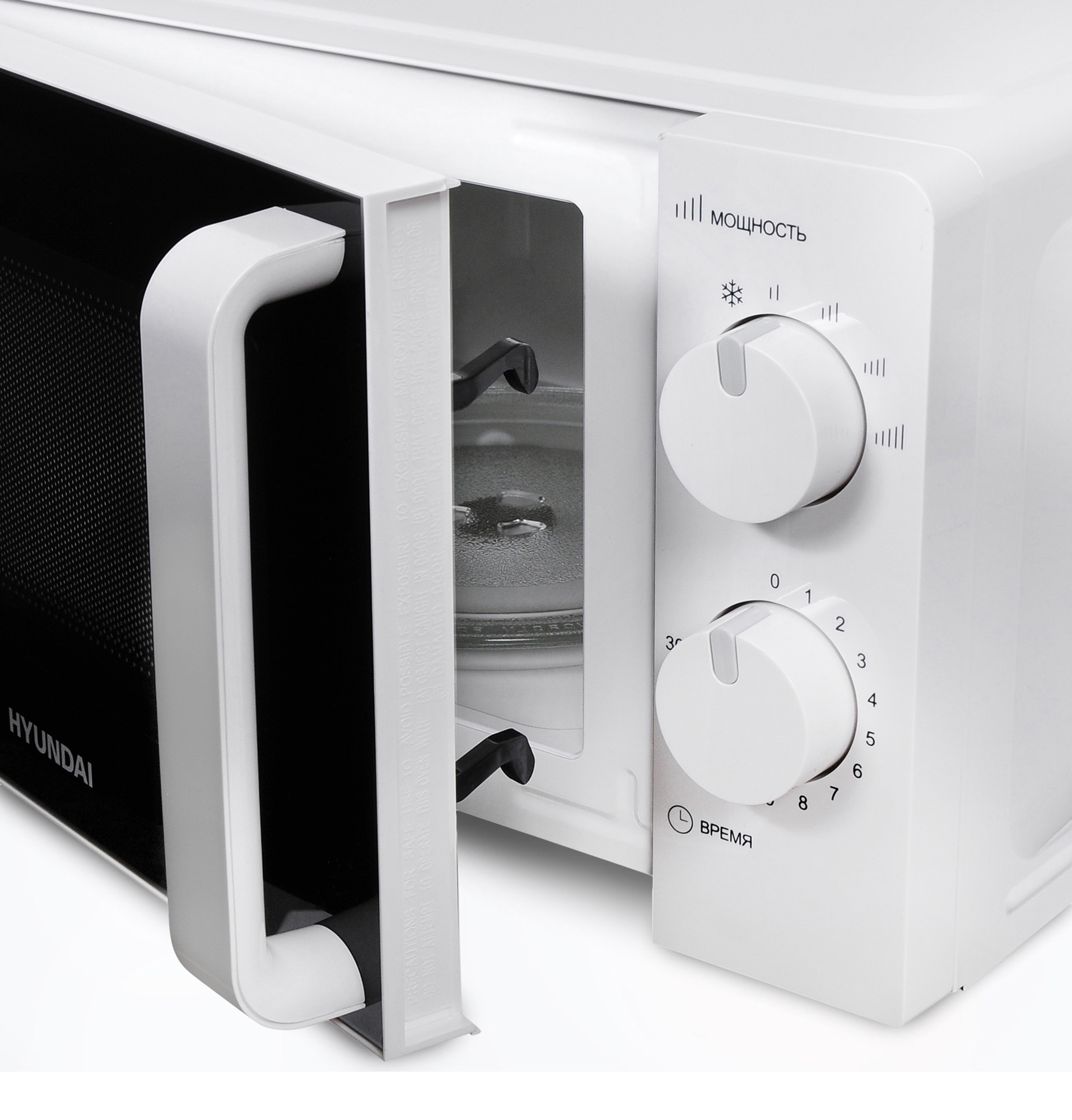 Микроволновка оснащена эргономичной ручкой, за которую её легко открывать, а в конце цикла прибор издаёт характерный громкий сигнал. В комплекте с Hyundai HYM-M2038 поставляется инструкция полностью на русском языке.