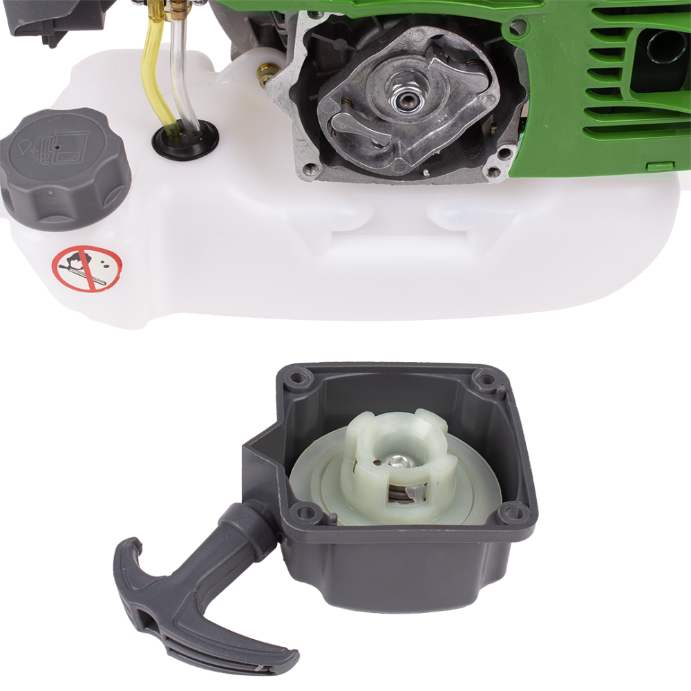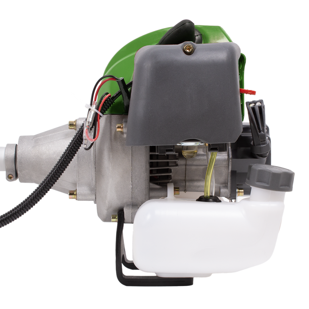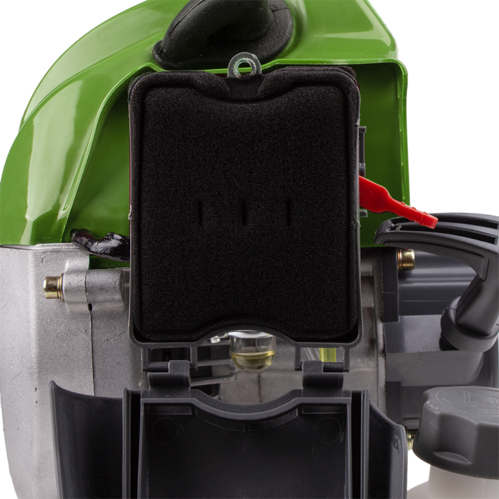 Особенности: 2-тактный двигатель воздушного охлаждения, улучшенный карбюратор, усиленный редуктор, головка полуавтомат Китай, ручка газа Китай, стандартное крепление рукоятки к штанге, ЛЕГКИЙ ПУСК 4 кулачка, насос-праймер подкачки топлива, металлическая защита бензобака, система виброгашения – 6 маслозаполненных, обрезиненных подшипников в штанге, упрощенная система крепления защитного кожуха к штанге (2 винта)