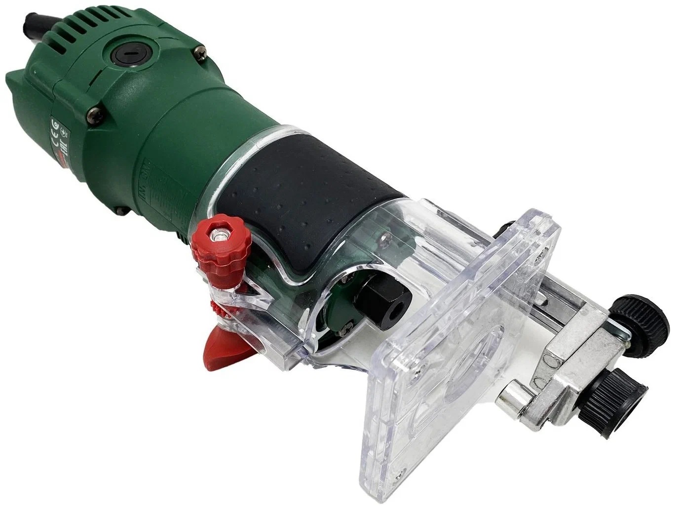 Фрезер кромочный DWT KF06-30 имеет фиксатор шпинделя для удобной замены фрезы. Также имеет систему регулировки глубины фрезерования. Оснащен системой удаления пыли которая позволяет производить сбор пыли в мешок, а также для подключения пылесоса.