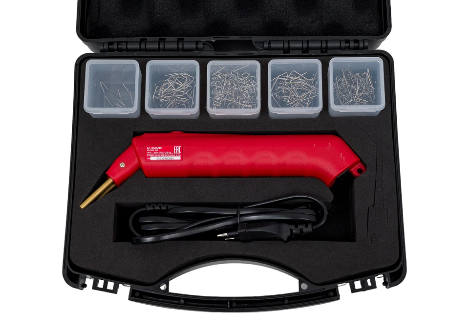 Паяльник импульсный WORTEX WG 7002 (0323288) предназначен для ремонта всех видов пластика, а именно: бамперов автомобилей, крыльев, контейнеров, пластиковой мебели и многого другого. Кроме того, паяльник применятся для профилактического усиления пластика в местах возможного излома. Инструмент обладает эргономичной формой и имеет противоударный корпус. В комплект поставки входит 4 вида скоб по 50 шт. В 2 сопла, которые выходят из корпуса, вставляется металлическая скоба, под воздействием температуры она нагревается и помещается в трещину, образовавшуюся в пластике, с целью её устранения.
