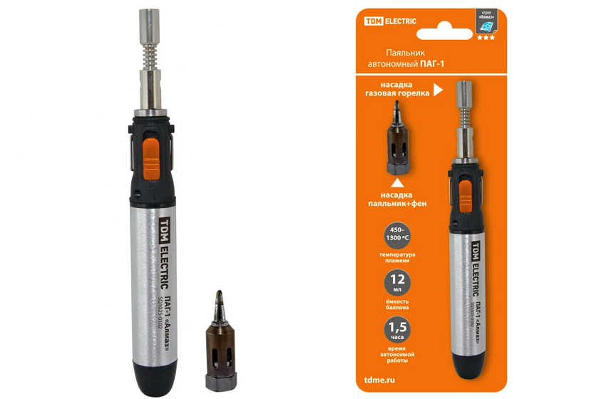 Возможность работы в условиях, где отсутствует доступ электросети. Длительная работа от одного комплекта батареек / заправки газом. Быстрый разогрев. Подставка/колпак для защиты поверхностей от температурного воздействия при охлаждении паяльника. Три варианта применения с различными насадками: паяльник, фен, горелка (ПАГ-1).