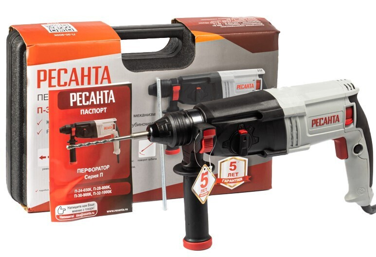 Прорезиненный ударопрочный корпус - для долгого срока службы инструмента Патрон SDS-plus - для простой смены оснастки Регулировка оборотов - для работы с разными материалами Система защиты от попадания пыли Кейс - для удобства хранения и транспортировки Ресанта П-30-900К 75/3/2 Предохранительная муфта - для защиты инструмента при заклинивании бура Функцией реверса упрощает выведение застрявшего в материале сверла.