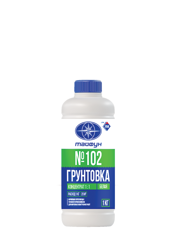 Акриловая грунтовка-концентрат Тайфун Мастер №102 применяется для внутренних и наружных работ по укреплению пористых и непрочных оснований (гипс, кирпич, бетон, штукатурка). Расход: 0,05-0,07 кг/м2. Разбавляется водой 1:1. Высыхает в течение 4 часов.