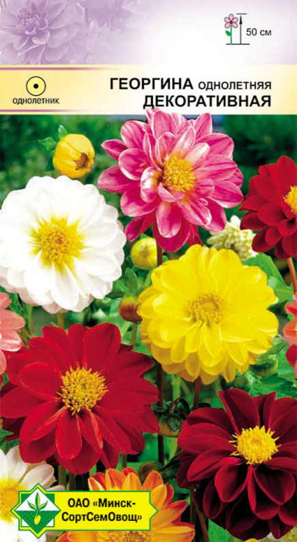 Однолетнее роскошное растение высотой около 50 см. Обильно цветет с июля до заморозков. Соцветия разнообразных окрасок, в диаметре 7-10 см, махровые. Для цветников, балконных ящиков, великолепно смотрится в букетах. Семена на рассаду высевают в начале апреля (в мае возможен посев непосредственно в грунт). Рассаду высаживают после окончания заморозков. Осенью клубни можно выкопать и сохранить до весны.