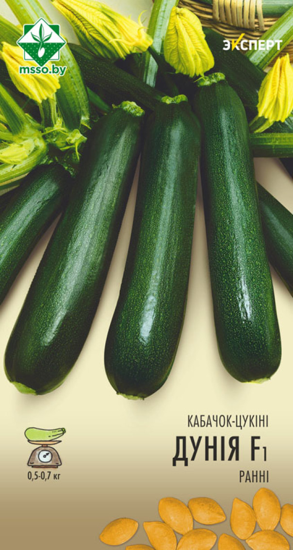 Ранний урожайный гибрид голландской селекции с длительным периодом плодоношения. Период от всходов до первого сбора урожая 45-49 дней. Растение кустового типа, компактное, с короткими междоузлиями. Плоды темно-зеленые, с глянцевым блеском, цилиндрической формы, без ребер, однородные по размеру, массой 0,5-0,7 кг. Мякоть кремовой окраски, с превосходной структурой. Вкусовые и диетические качества отличные. Устойчив к болезням.