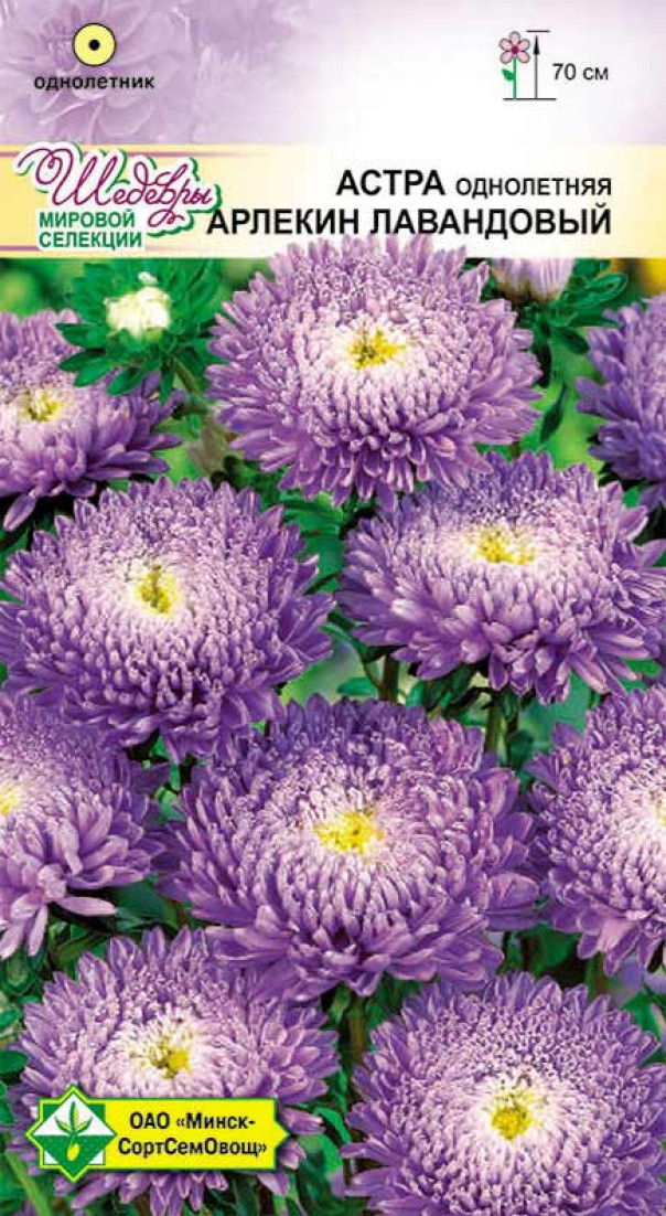 Новейший оригинальный срезочный сорт. Среднего срока цветения. Куст пирамидальный, прочный, высотой 65-70 см. Соцветия махровые, лавандовые с желтоватой серединкой, в диаметре 6-8 см. Одно растение формирует 10-14 побегов, которые можно срезать у основания как один большой букет. Семена на рассаду высевают с конца марта до середины апреля (с конца апреля возможен посев непосредственно в грунт). Рассаду высаживают в мае.
