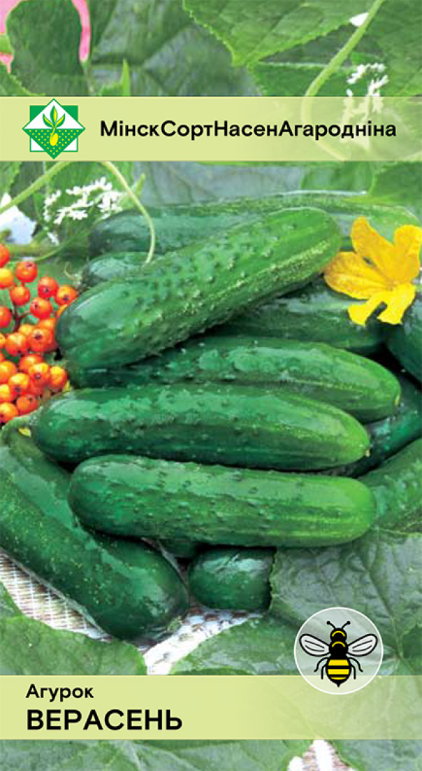 Среднеспелый сорт белорусской селекции. Период от всходов до начала плодоношения 54-58 дней. Пчелоопыляемый, урожайный, с длительным периодом плодоношения. Плоды удлиненно-овальные, темно-зеленые, среднебугорчатые, очень долго не желтеют, с малой семенной камерой. Лучший огурец для хранения и транспортировки. Универсального назначения. Хороший опылитель. Уникален по устойчивости к болезням.