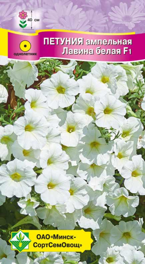 Однолетнее продолжительно цветущее растение с гибкими свисающими побегами длиной около 40 см. Цветки снежно-белые, в диаметре 7-9 см. Очень эффектна в балконных ящиках и подвесных корзинах. Посев на рассаду производят в конце марта - начале апреля. Семена не присыпают, а слегка вдавливают в рыхлую влажную почву, посадочную ёмкость накрывают стеклом или плёнкой. В открытый грунт рассаду высаживают с середины мая. Необходимо солнечное место и регулярные подкормки.