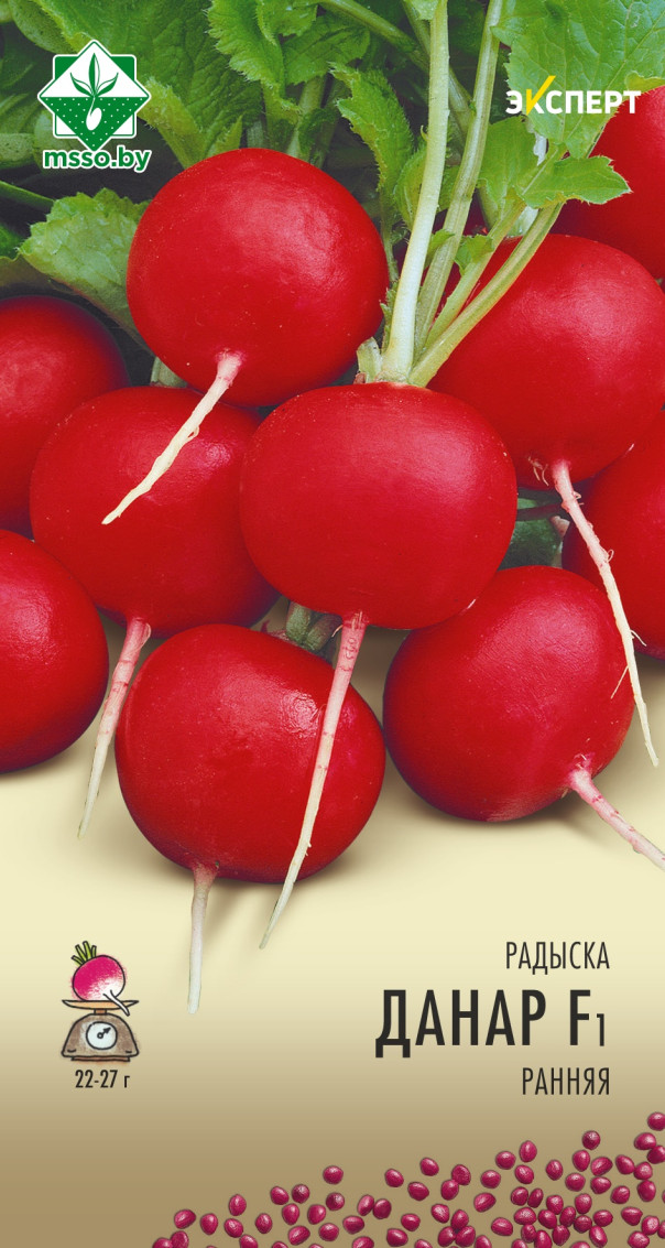 Ранний высокоурожайный гибрид голландской селекции. Период от всходов до уборки 20-25 дней. Корнеплоды ярко-красного цвета, округлой формы, выравненные, массой 22-27 г, превосходного товарного вида. Мякоть белая, хрустящая, сочная, без остроты, отличных вкусовых качеств. Характеризуется неприхотливостью в выращивании, устойчивостью к пожелтению ботвы, растрескиванию и цветушности, легко переносит перепады температур и недостаточную освещенность. Для открытого и защищенного грунта.