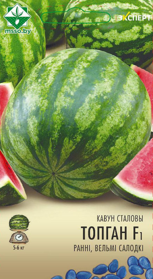 Плоды Топган F1 вырастают ровными, с прочной корой и насыщенно-красной, сладкой мякотью без волокон. Средний вес арбуза — 7-10 кг. Гибрид устойчив к основным заболеваниям, хорошо переносит перевозку и длительное хранение. Раннеспелость позволяет насладиться урожаем уже через 65-75 дней после появления всходов.