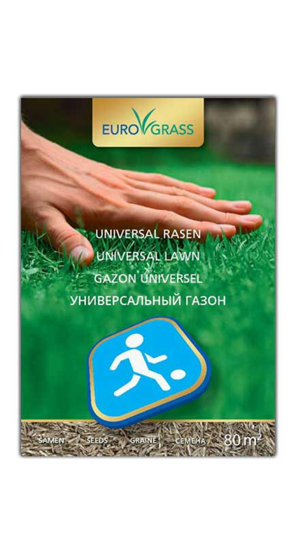 Смесь семян газонных трав Универсальный газон (Universal lawn) создает красивый, плотный, устойчивый к нагрузкам газон с быстрым восстановлением. Получается универсальный газон, который может использоваться для проведения досуга и занятий спортом. Состав*: 25% - райграс пастбищный сорт 1; 25% - райграс пастбищный сорт 2; 25% - овсяница красная; 25% - мятлик луговой. *Составы травосмесей и процентное соотношение семян трав в смеси могут изменяться производителем исходя из урожая и наличия необходимых компонентов.