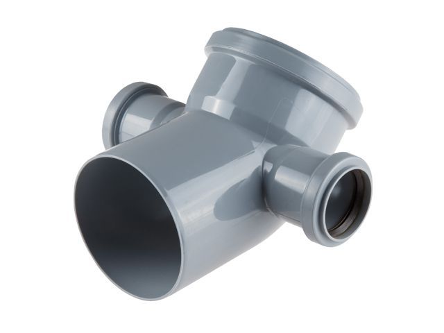 Отвод канализационный диаметром 110 мм под углом 45 градусов для монтажа систем внутренней канализации. Имеет выходы слева и справа для трубы диаметром 50 мм.
