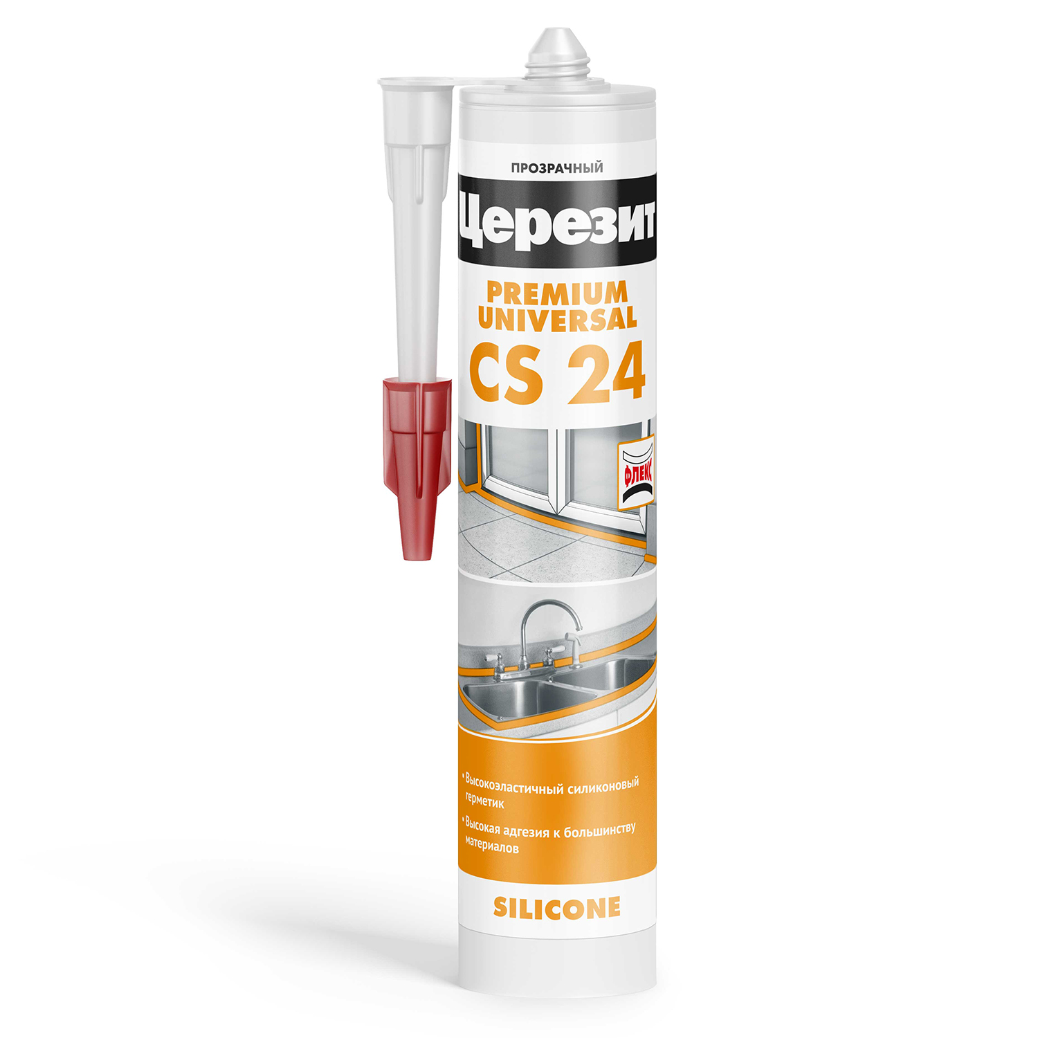 Универсальный силиконовый герметик CS 24 кислотного отверждения. Предназначен для использования без предварительной грунтовки внутри и снаружи зданий: для герметизации оконных и дверных блоков, стеклопакетов, швов стенных панелей и сборных ограждающих конструкций из бетона, металла и стекла, швов и примыканий в облицовочных покрытиях в ванных комнатах, душевых; выполнения деформационных швов в бассейна, резервуарах, системах теплоизоляции фасадов, в т.ч. в соединениях с относительно высокой подвижностью; в санитарных и других конструкциях, где требуется стойкость к плесени.