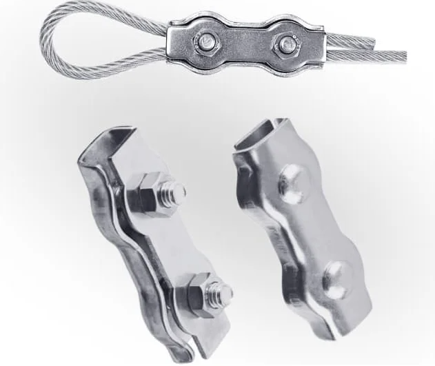 Зажим троса плоский двойной Duplex из коррозиестойкой стали А4 применяется в такелажных работах для соединения между собой стальных канатов толщиной 2 - 10 мм, а также для изготовления концевых петель. Его размер определяется по диаметру зажимаемого троса.