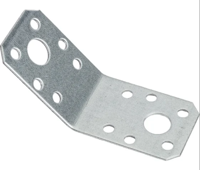 Уголок крепежный под 135 градусов KUS представляет собой металлическую пластину, согнутую под углом 135 градусов со сторонами одинаковой длины. Применяется для соединения деревянных стропил, а также для монтажа деревянных крыш. Получил универсальное применение, когда элементы конструкции необходимо скрепить под углом 135 градусов. Наличие больших отверстий позволяет использовать анкерную технику для соединения деревянных конструкций к бетону, кирпичу. Крепление осуществляется гвоздями или шурупами (к бетону/кирпичу - анкерами). Большие отверстия имеют диаметр 11 или 13 мм (диаметр зависит от размера крепежного уголка), маленькие — 5 мм.