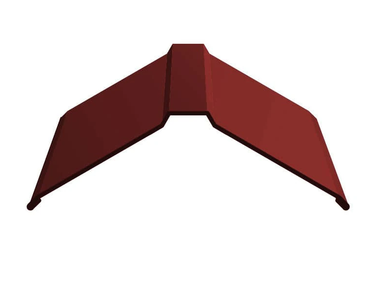 Отделочный элемент кровли. Помогает красиво оформить ребро пересечения двух скатов в верхней точке; оберегает стыки скатов от попадания влаги, ветра и других негативных влияний погоды. Изготавливается из оцинкованной стали с защитно-декоративным полимерным покрытием цвета по каталогу RAL. Края завальцованы.
